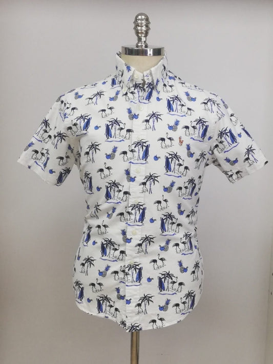 Camisa de botones Polo Ralph Lauren 🏇🏼 Oxford color blanco con diseño de isla en azul y negro Talla S Entalle Clásico