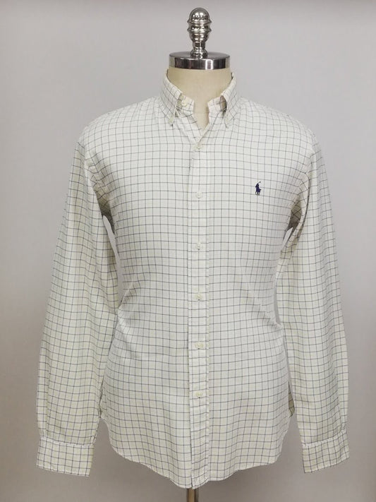 Camisa Polo Ralph Lauren 🏇🏼 color blanco con patrón de cuadros amarillo y negro Talla M Entalle Custom Fit