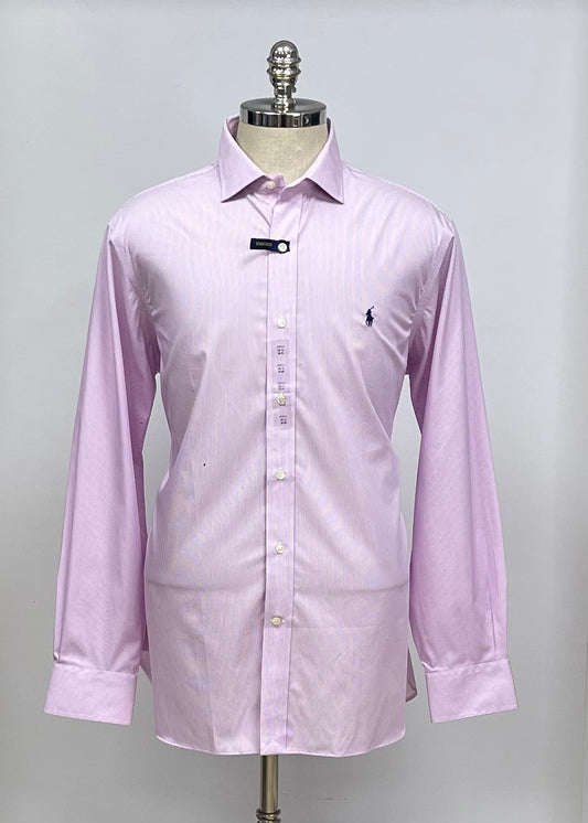 Camisa Polo Ralph Lauren 🏇🏼 color blanco con patron de rayas finas en color rosado Talla S Entalle Clásico
