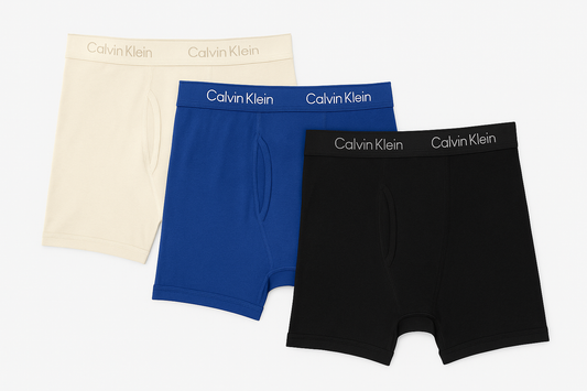 Paquete de 3 Calzoncillos tipo Boxer Calvin Klein Cotton Stretch en color negro, crema y azul - Tela ligera en Talla XL