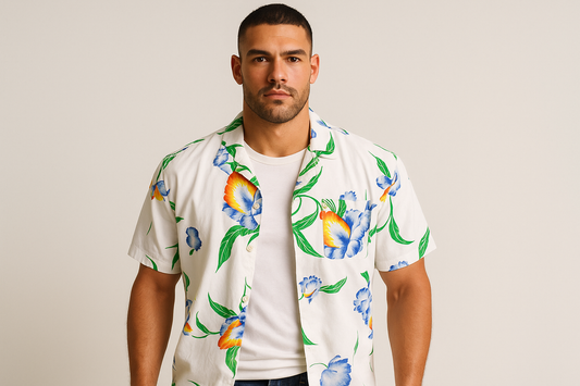 Camisa marca Levis 👖color blanco con diseño de floral en color verde, azul y naranja Talla L Entalle Regular