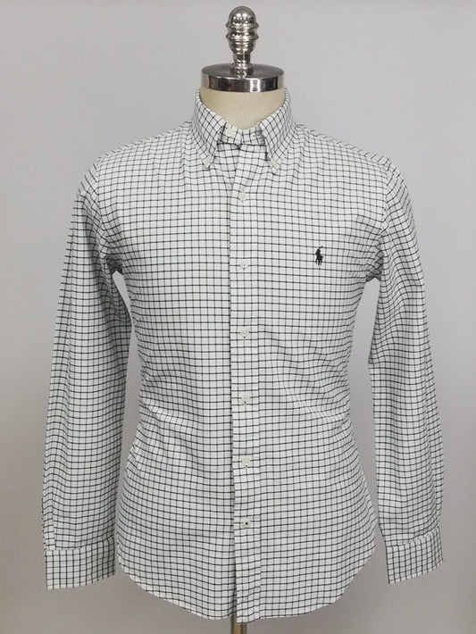 Camisa Polo Ralph Lauren 🏇🏼 color blanco con patrón de cuadros en color negro Talla M Entalle Regular (ver descripción)