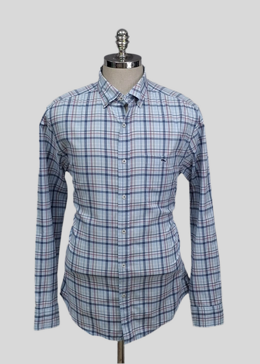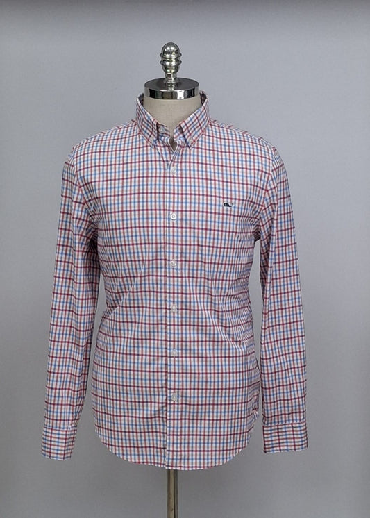 Camisa de botones Vineyard Vines 🐳 color azul de cuadros en color rosado y blanco Talla L Entalle Slim Fit