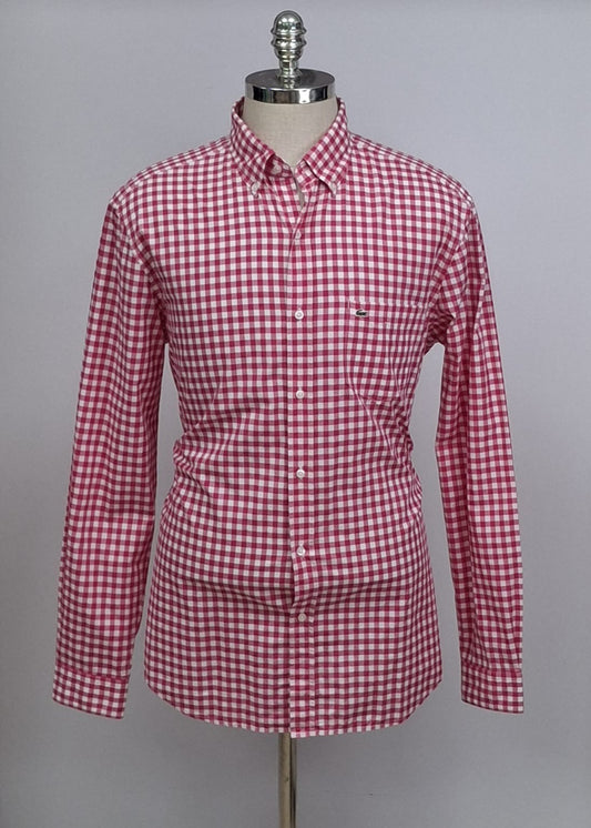 Camisa Lacoste 🐊 con patron de cuadros gingham rosado y blanco Talla L Entalle Regular