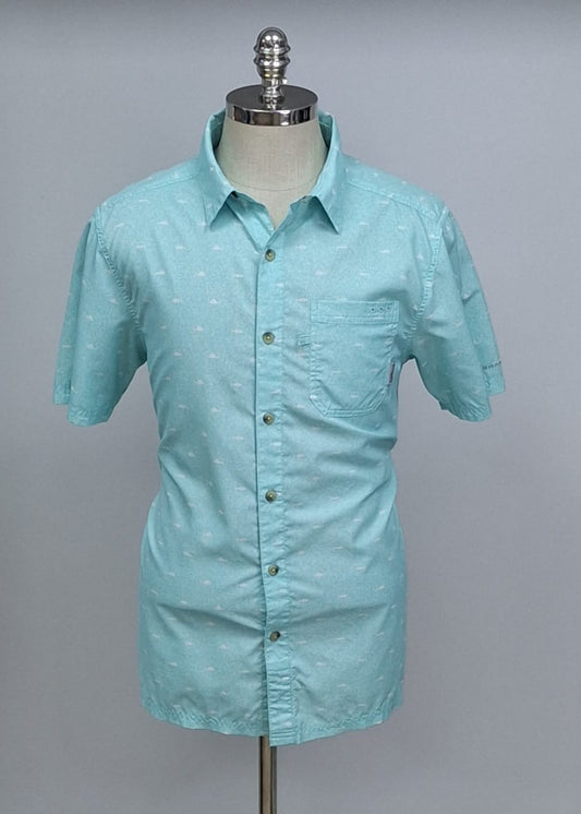 Camisa Columbia 🔹Color turquesa claro con diseño de peces Manga corta Talla L