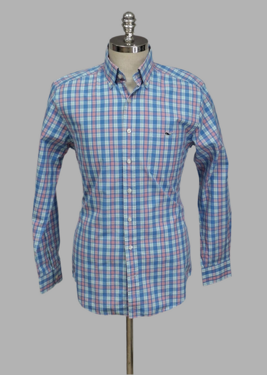 Camisa de botones Vineyard Vines 🐳 de cuadros en color rosado magenta, azul, verde y blanco Talla M Entalle Slim Fit