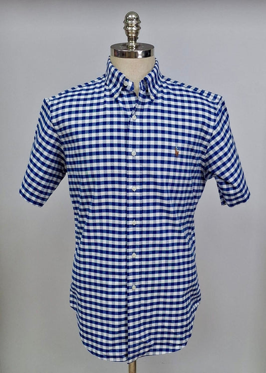 Camisa Polo Ralph Lauren 🏇🏼 Oxford con patron de cuadros gingham azul y blanco Talla M Entalle Clásico