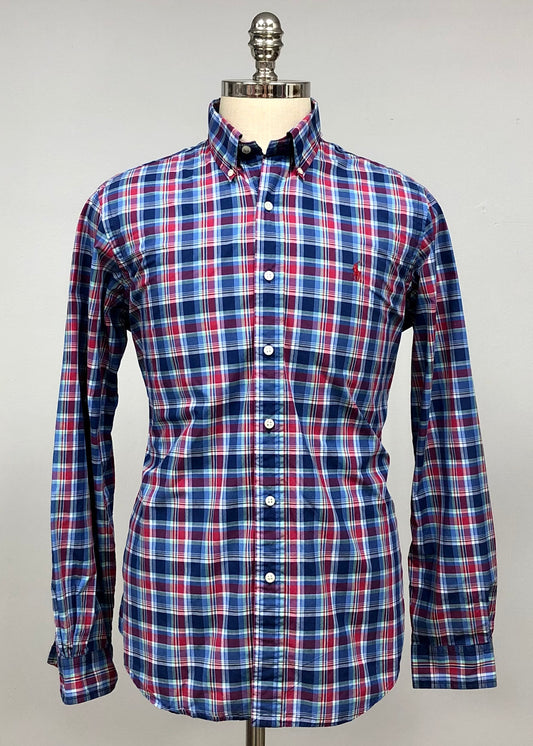 Camisa Polo Ralph Lauren 🏇🏼 con patrón de cuadros tartán azul, celeste y rojo Talla L Entalle Regular