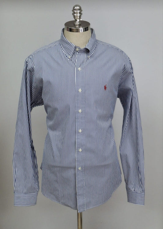 Camisa Polo Ralph Lauren 🏇🏼 color blanco con patrón de rayas en azul Talla XL Entalle Clásico