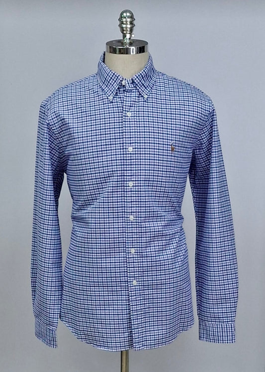 Camisa Polo Ralph Lauren 🏇🏼 Oxford color blanco de cuadros en color morado y azul navy Talla XL Entalle regular