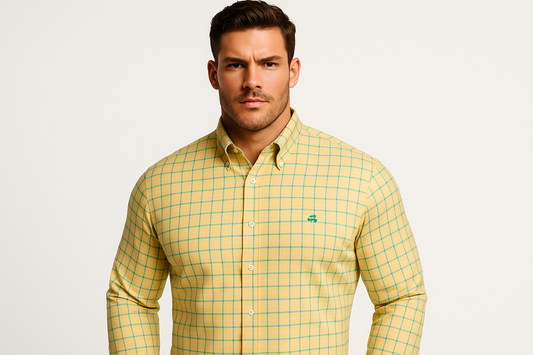 Camisa de botones Brooks Brothers 🐑 color amarillo claro con cuadros en verde y azul Talla XL Entalle Regular