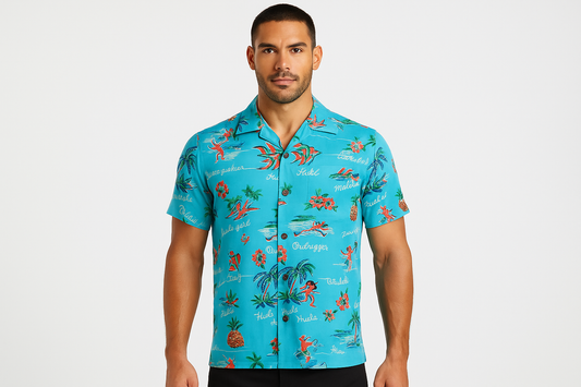 Camisa de botones Kalakaua hawaiana 🌺 color celeste con diseño hawaiano Talla M Entalle Regular