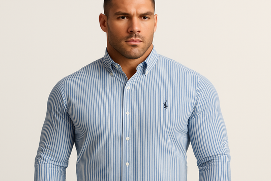 Camisa Polo Ralph Lauren 🏇🏼 Oxford color blanco con rayas en color celeste Talla XL Entalle Custom Fit