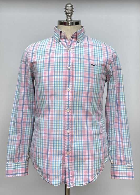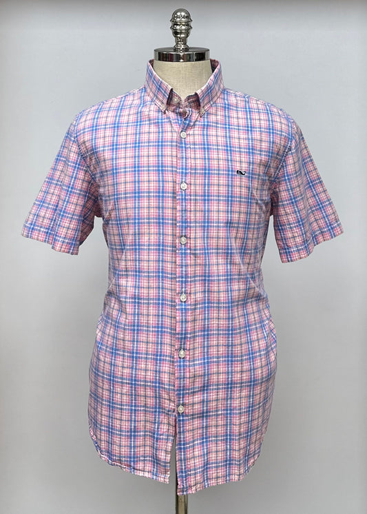 Camisa de botones Vineyard Vines 🐳 con patrón de cuadros en color rosado, celeste y blanco Talla XL Entalle Slim Fit
