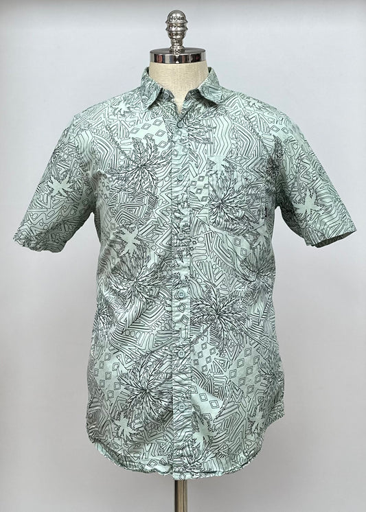 Camisa de botones Vans 🛹 color verde claro con diseño de hojas Talla M Entalle Regular