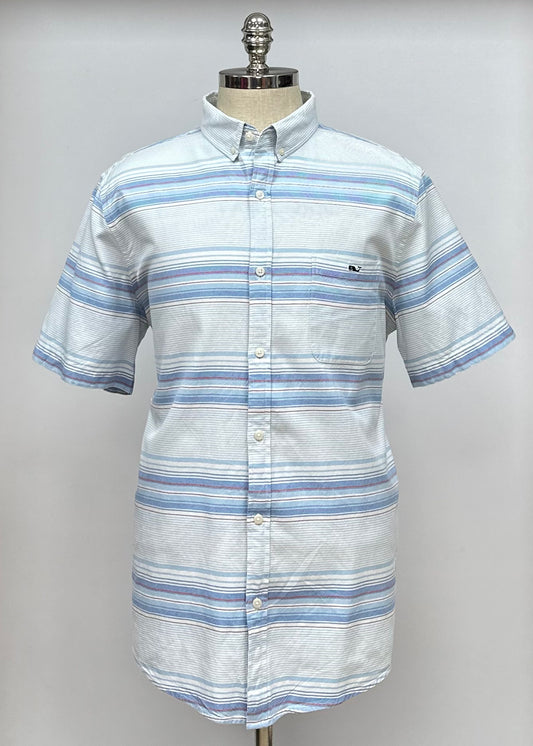 Camisa de botones Vineyard Vines 🐳 con patrón de rayas en color celeste, blanco y rojo Talla XL Entalle Slim Fit