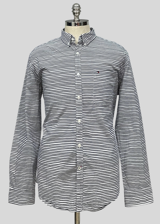 Camisa de botones Tommy Hilfiger 🇺🇸 en color blanco con rayas en color negro Talla XL Entalle Slim Fit