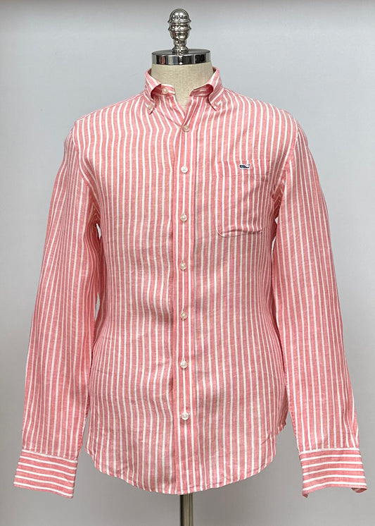 Camisa de lino Vineyard Vines 🐳 con patrón de rayas en color salmón y blanco Talla S Entalle Clásico
