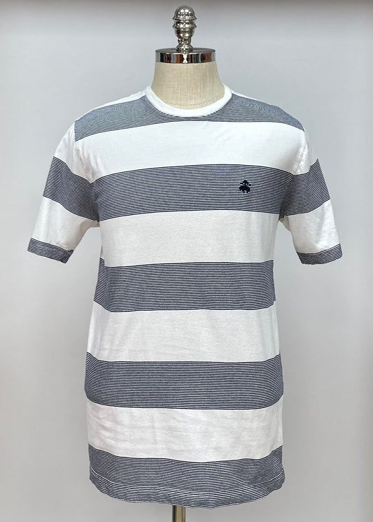 Camiseta cuello redondo Brooks Brothers 🐑 color blanco con rayas en color azul oscuro Talla Large