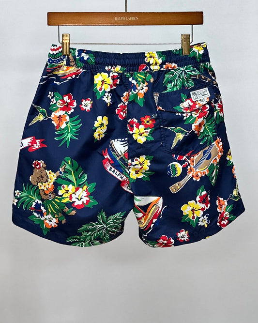 Short de baño Polo Ralph Lauren 🏇🏼 color azul navy con diseño hawaiano talla S