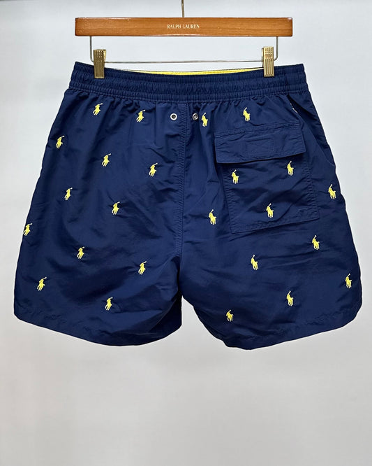Short de baño Polo Ralph Lauren 🏇🏼 color azul navy con diseño de logos en amarillo talla M