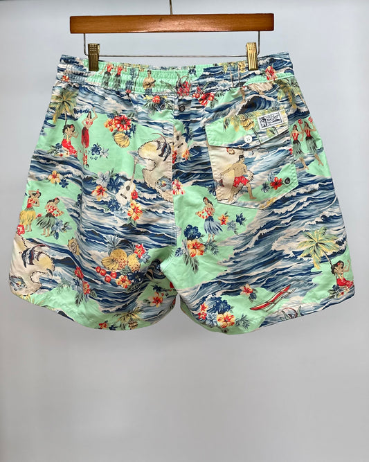 Short de baño Polo Ralph Lauren 🏇🏼color verde claro con diseño hawaiano talla L
