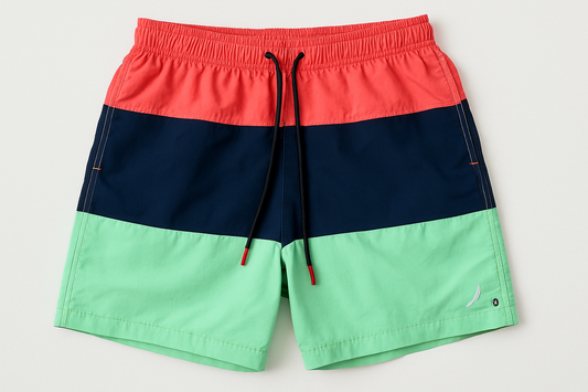Shorts de baño Nautica ⚓️ con franjas en color rosado, azul navy y verde claro talla M