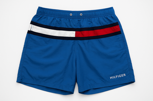 Short de baño Tommy Hilfiger color azul con franja en color azul, rojo y blanco talla L