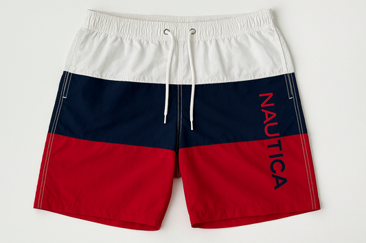 Short de baño Nautica ⚓️ con franjas en color blanco, azul navy y rojo talla L