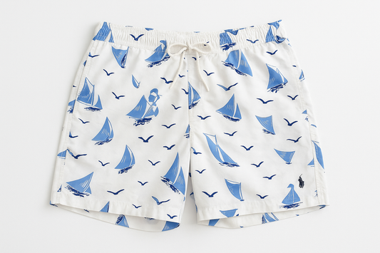Short de baño Polo Ralph Lauren 🏇🏼color blanco con diseño de veleros en azul talla L