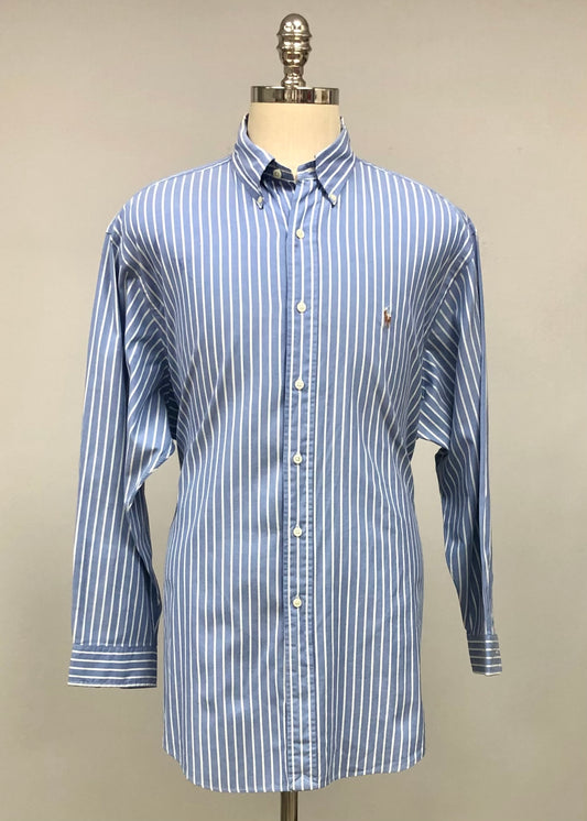 Camisa Polo Ralph Lauren 🏇🏼 color azul con patron de rayas en color Blanco Talla XL Entalle Clásico
