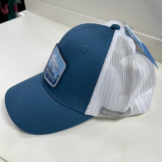 Gorra Columbia 🔷 color celeste y blanco con logotipo en color blanco