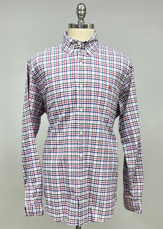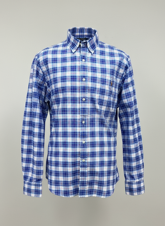 Camisa Polo Ralph Lauren 🏇🏼 Oxford color blanco con patron de cuadros azul y rojo Talla XL Entalle Slim Fit