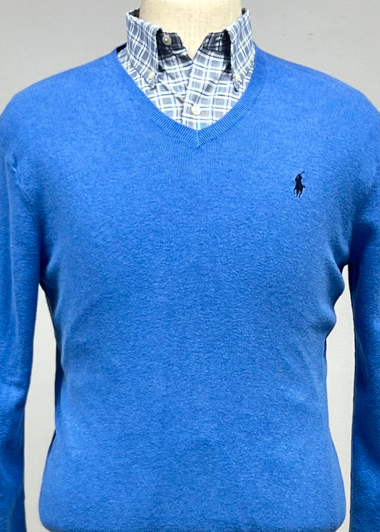 Sueter Jersey con cuello V Polo Ralph Lauren 🏇🏼 color azul claro Talla S