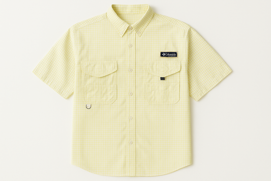 Camisa Columbia 🔹 Modelo Super Bonehead con patrón de cuadros en amarillo y blanco Manga corta Talla XL