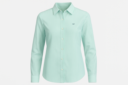 Camisa de mujer Vineyard Vines 🐳 con patrón de rayas en turquesa claro y blanco Talla XS (0) Entalle Regular
