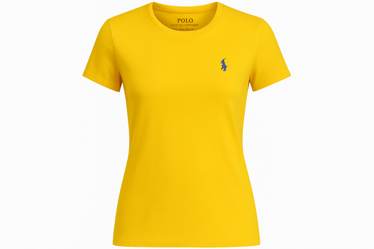 Camiseta de mujer cuello redondo Polo Ralph Lauren 🏇🏼 color amarillo intenso con logo en azul Navy Talla S Entalle Regular