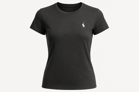 Camiseta de mujer cuello redondo Polo Ralph Lauren 🏇🏼 color gris oscuro con logo en color blanco Talla M Entalle Regular