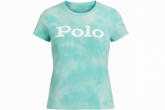 Camiseta cuello redondo de mujer Polo Ralph Lauren 🏇🏼 color turquesa y blanco con diseño de logo en letras en color blanco Talla S Entalle Regular