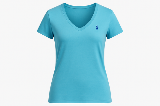 Camiseta de mujer cuello V Polo Ralph Lauren 🏇🏼 color turquesa con logo en azul navy Talla M Entalle Regular