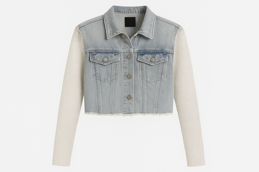 Jacket de mujer marca americana 🇺🇸 De jeans Color celeste y mangas tejidas Talla S (6)