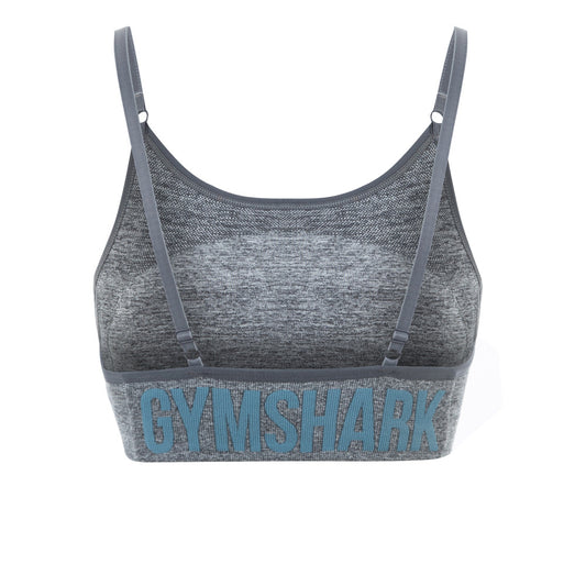 Sujetador de tiras deportivo de mujer Gymshark Performance en color gris con logo en azul Talla S