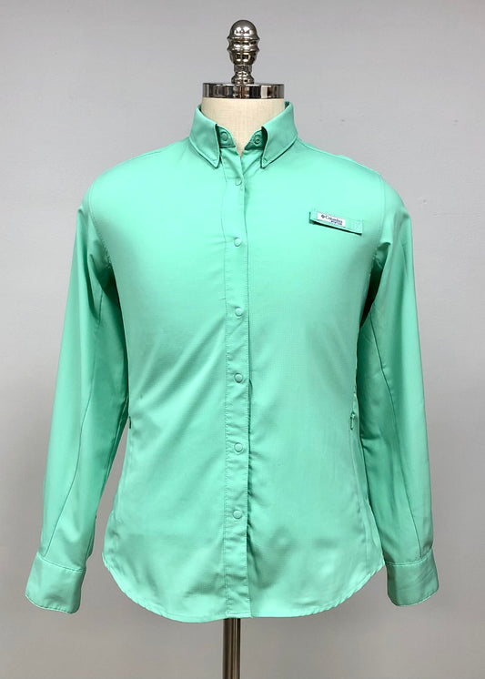Camisa de mujer Columbia 🔹color verde claro con Omni Shade Manga larga Talla L