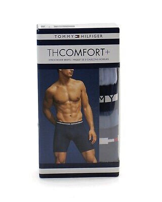 Paquete de 3 Boxer Briefs Tommy Hilfiger 🇺🇸 TH Comfort+ Tela Microfibra color Rojo, azul y celeste Talla M