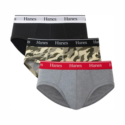 Paquete de 3 Calzoncillos a la cintura marca Hanes de Tela soft en color negro, gris y diseño de camouflage - en Talla 3XL