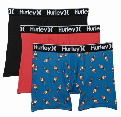 Combo de 3 Boxers Briefs Hurley 🏄🏽♂️ Tela Performance color Negro, azul y rosado Talla S y XL