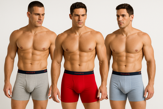 Paquete de 3 Calzoncillos tipo Boxer Hanes de Tela soft en color rojo, gris y celeste - en Talla XL