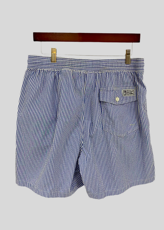 Short de baño Polo Ralph Lauren 🏇🏼 con patron de rayas en color azul y blanco con logo bordado en color naranja talla XL