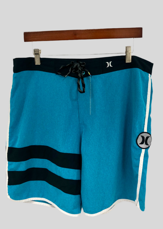 Short de baño Hurley 🏄🏽♂️ color turquesa y diseño de rayas en negro talla 34 (L)