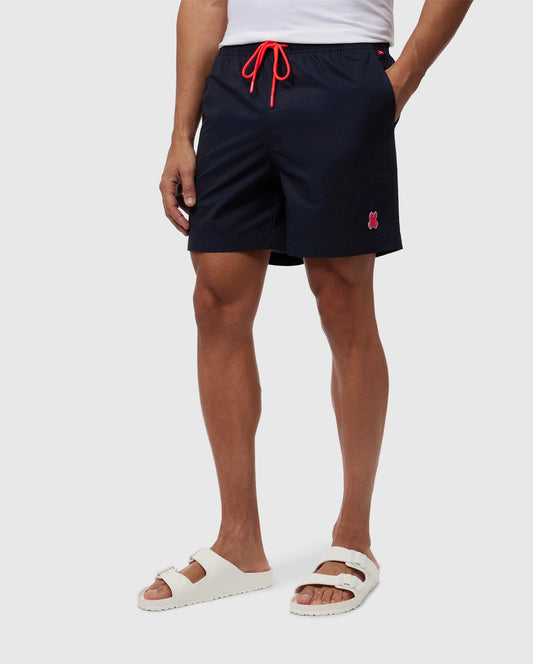 Short de baño Psycho Bunny 🐰 color azul navy y logo tradicional en naranja intenso Talla M